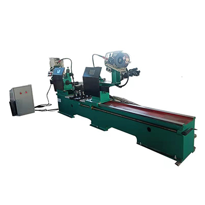 該機(jī)適用于帶式輸送機(jī)托輥等管狀工件的外環(huán)焊縫的焊接,采用CO2或混合氣體為保護(hù)介質(zhì)配以2臺CO2氣體保護(hù)焊,采用機(jī)械和液壓進(jìn)行自動傳動,收弧自動搭接。電器控制采用“PLC”進(jìn)行自動控制,操作簡單、可靠性強(qiáng),除人工上、下料其余全部過程自動進(jìn)行。